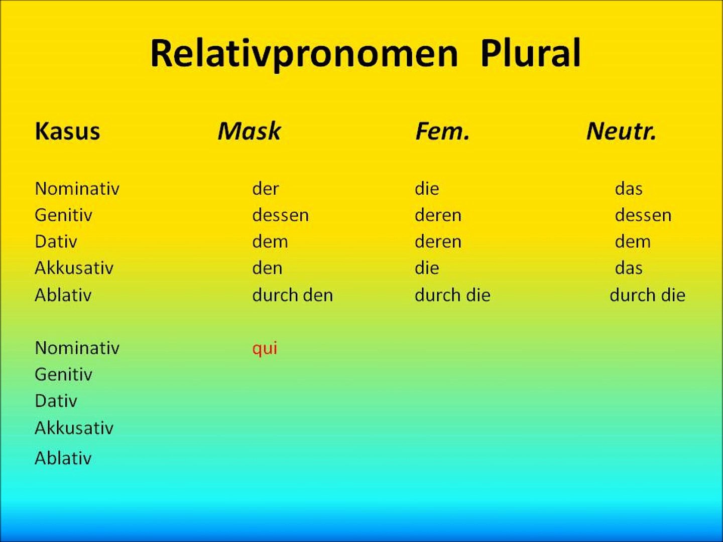 Lequel Franzosisch Grammatik Crashkurs from www.abiweb.de Relativpronomen sind die pronomen der, die, das, welche usw., mit denen wir relativsätze einleiten. Der, die, das, welcher, welches und welche, sowie die. ⇐ предыдущаястр 6 из 21следующая ⇒. Wie bestimmt man die relativpronomen richtig? Relativpronomen werden gebraucht, um relativsätze einzuleiten. Relative pronouns in german or relativpronomen can be a little tricky to learn, but once you know what they are and the cases which change them, you can get it! Genus und kasus gibt das bezugswort an, der kasus wird durch die funktion im nebensatz bestimmt. Die relativpronomen leiten relativsätze ein.