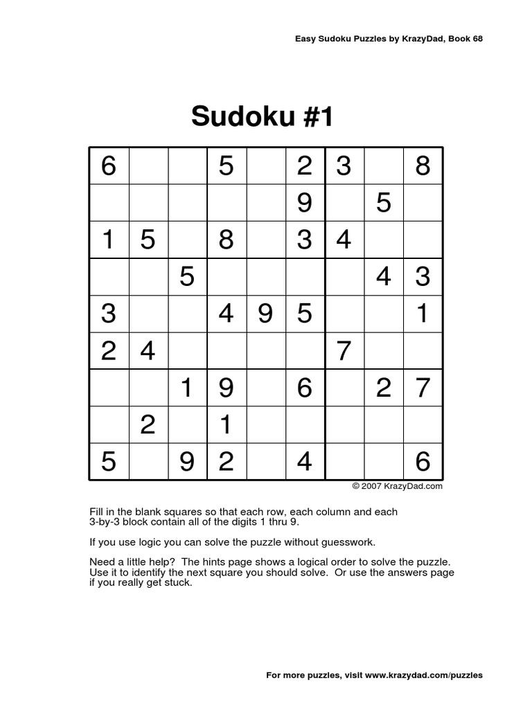 Easy Sudoku Puzzles By Krazydad / Maybe you would like to learn more about one of these?. Maybe you would like to learn more about one of these? Check spelling or type a new query. Easy sudoku puzzles by krazydad. We did not find results for: